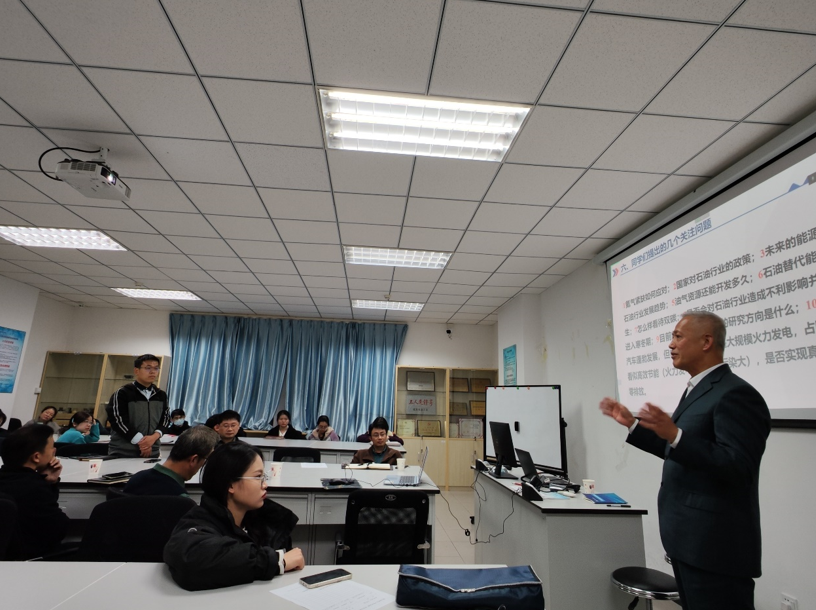 车长波研究员从党的二十大报告对能源资源的重要论述、习近平总书记对能源资源的重要论述展开讨论,表明了习近平总书记和党中央对能源资源的重视,及进一步加大对油气勘探开发力度的决心;对能源资源的基本形势和特点以及能源资源的潜力及发展趋势进行了分析,强调了我国油气对外依存度持续增加,形势严峻,呼吁同学们积极应用自己的智慧、所学知识和高科技手段进行国内复杂油田的油气勘探与开发,要坚决贯彻习近平总书记的重要指示,将能源的饭碗牢牢端在自己的手上;总结了能源资源的战略对策,并针对同学们提出的一些相关问题进行解答,希望大家积极突破油气勘探开发技术,为祖国贡献更多的油气。