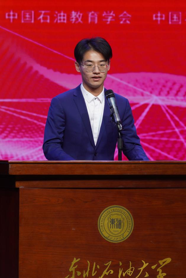 地球科学学院2021级硕士研究生孙笑凡作为获奖学生代表在闭幕式上发言。他表示,希望和队友们一起再接再厉,以赛促学、以学促能,为石油行业的发展壮大贡献力量。