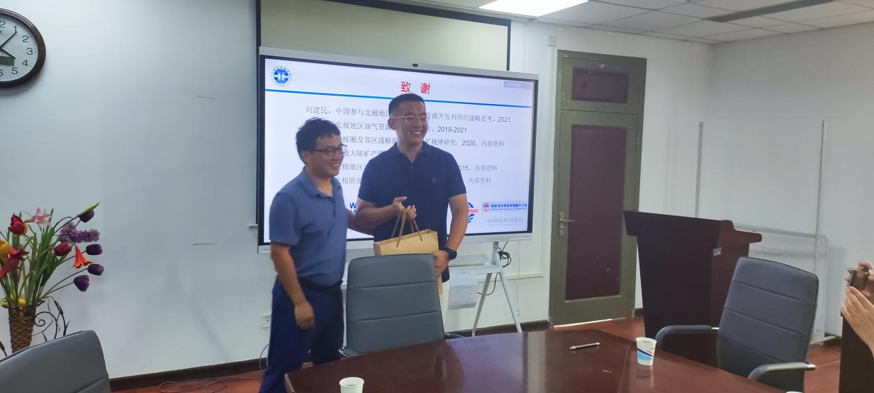 张凯逊副研究员开展了题为“北极地区油气资源潜力及战略思考”的学术报告,他从北极油气资源的研究意义和研究现状出发,运用油气资源评价的相关方法对北极油气资源建立了一整套完备的评价体系,并且对北极地区的油气资源禀赋和产业现状进行了深入的介绍。张凯逊副研究员精彩的报告激发了在场师生对北极油气资源潜力的兴趣,并就北极油气资源形成地质条件等话题展开热烈的讨论和交流。