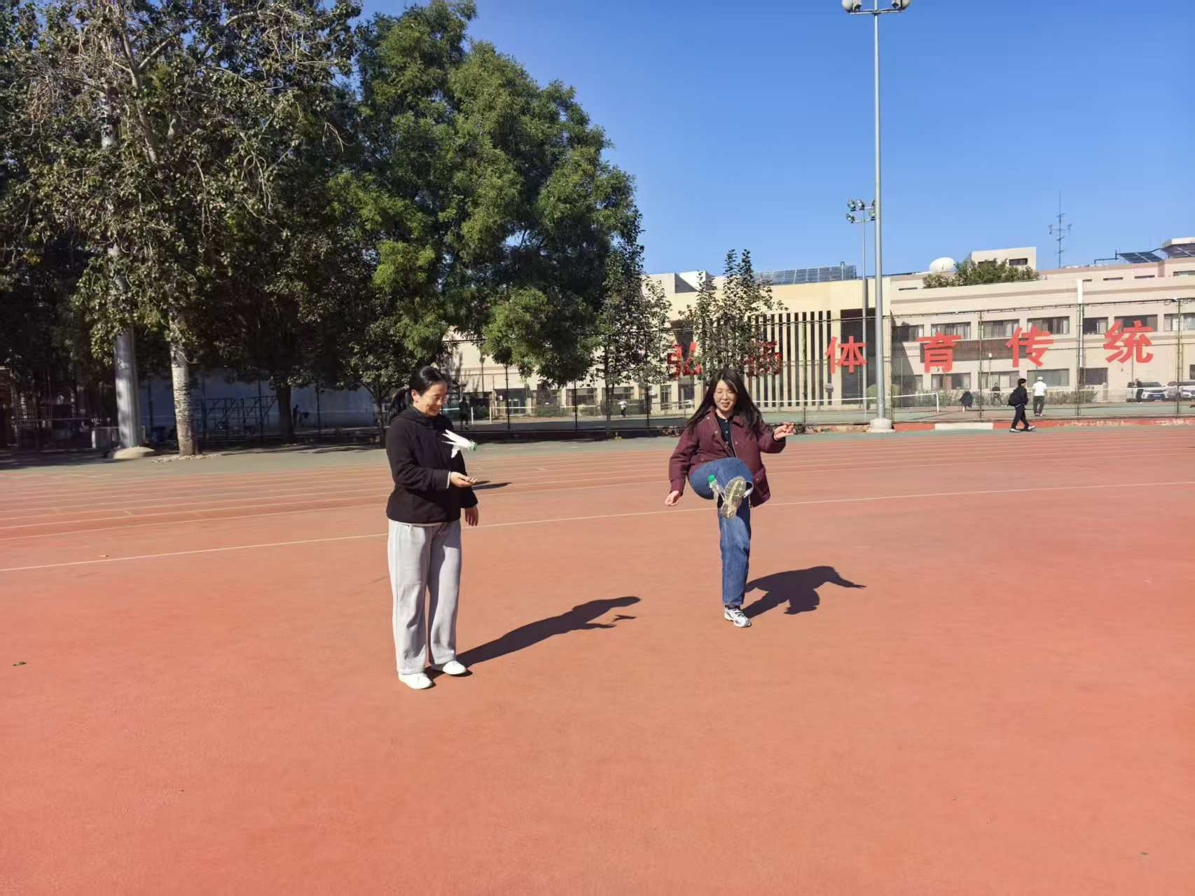 完成健步走后,踢毽子、跳绳、踢球射门等趣味体育活动同步开展。教职工们热情高涨,纷纷投身其中:毽子在脚尖灵活翻飞,跳绳在手中快速转动,足球朝着球门精准射门,现场欢笑声、喝彩声此起彼伏,热闹非凡。