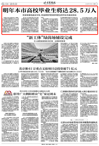 北京青年报:明年本市高校毕业生将达28.5万人