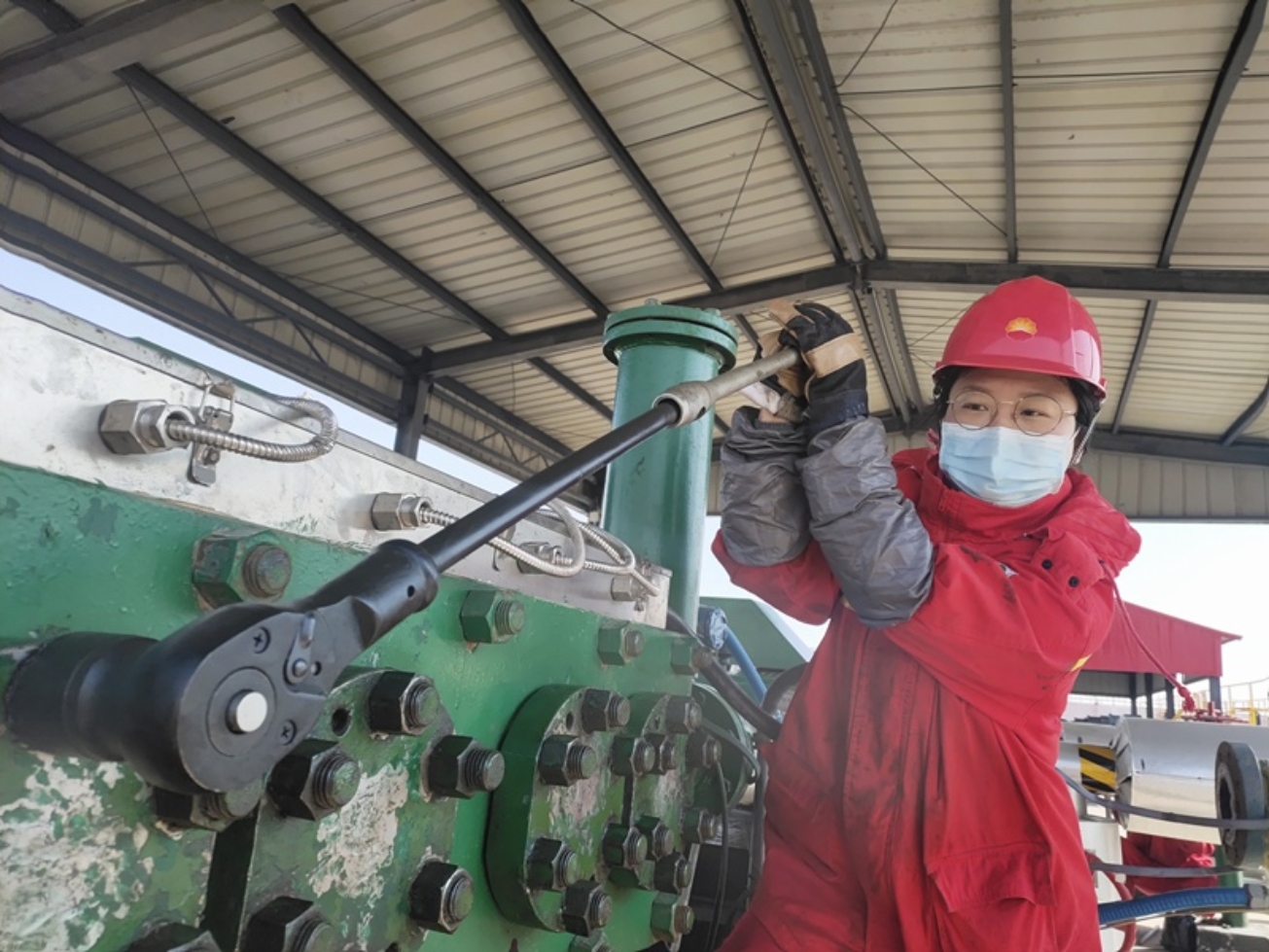 冯萌萌:我当时参加了采油工技能大赛和集输工技能大赛,女选手不多,别人练十遍,我就练十五遍。无论春夏秋冬,我都是和男同志在一起干一样的活。例如上抽油机换皮带,去中轴紧个螺丝,抽油机保养等等。女“汗”子的“汗”是我自己改的,因为我觉得当一个女汉子真的需要和大家流一样的汗。