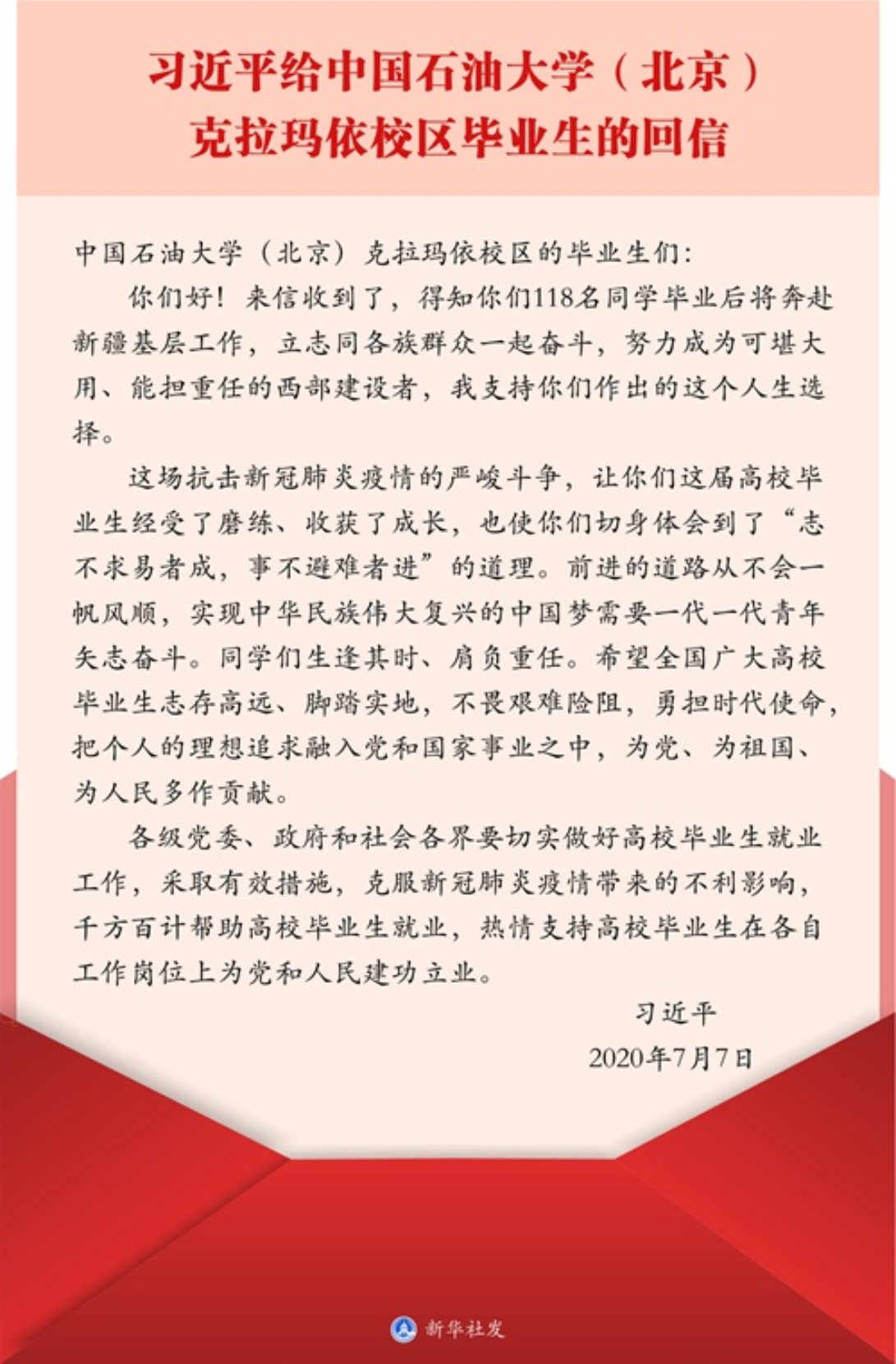 图表:习近平给中国石油大学(北京)克拉玛依校区毕业生的回信
