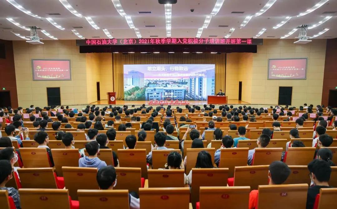 为持续推进党史学习教育走深走实,切实加强新形势下学校入党积极分子的教育培养工作,引导广大积极分子认真学习新时代党的创新理论,深化对党史、校史的认识,坚定政治信仰,端正入党动机,10月14日下午,中国石油大学(北京)校长吴小林以“敢立潮头,行稳致远:中石大新青年当以能源报国呼应时代脉动”为题,为2021年秋季学期入党积极分子培训班上开班第一课,本次党课也是校本部和克拉玛依校区入党积极分子第一次同上一堂党课。党委副书记雷玉江主持党课学习。