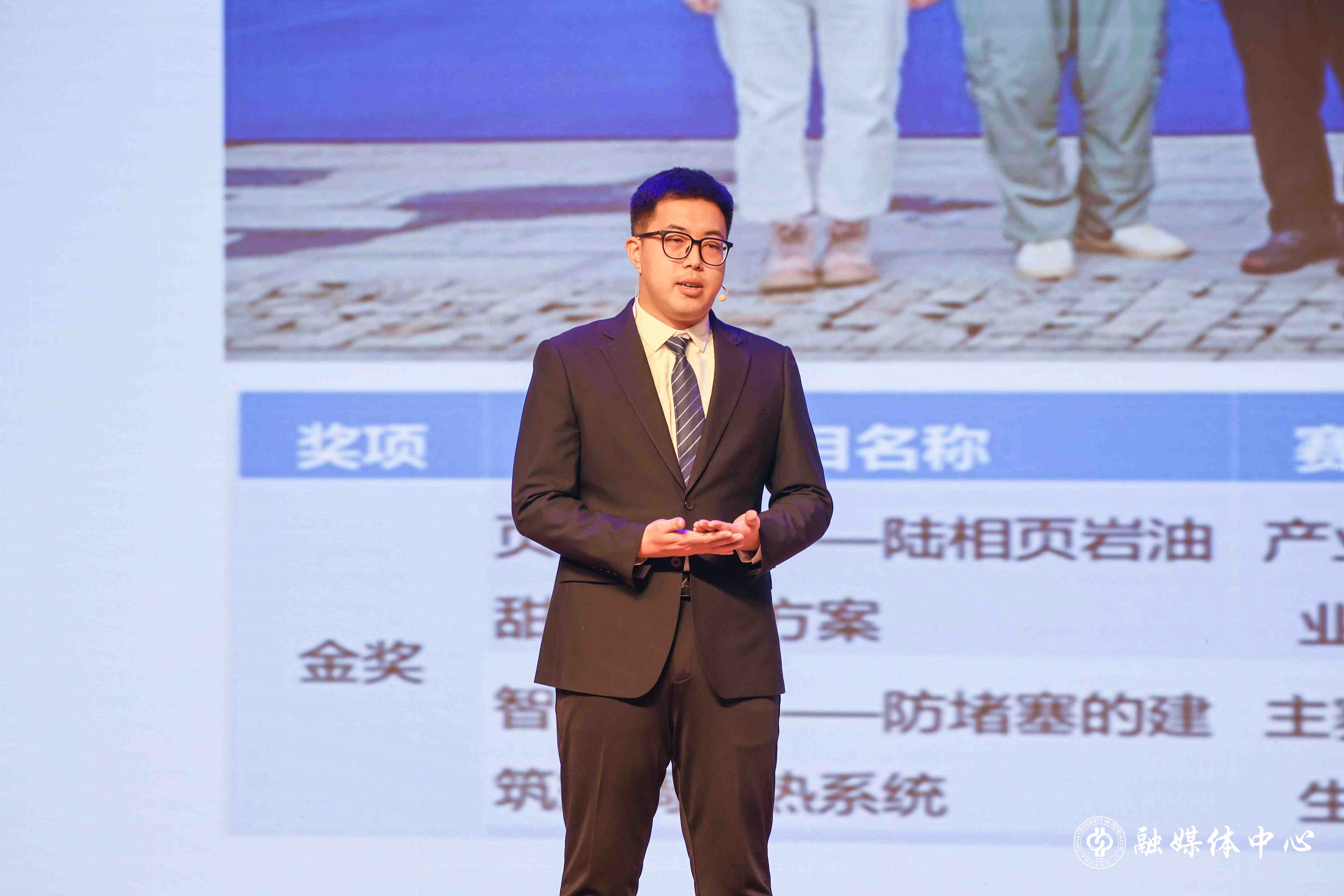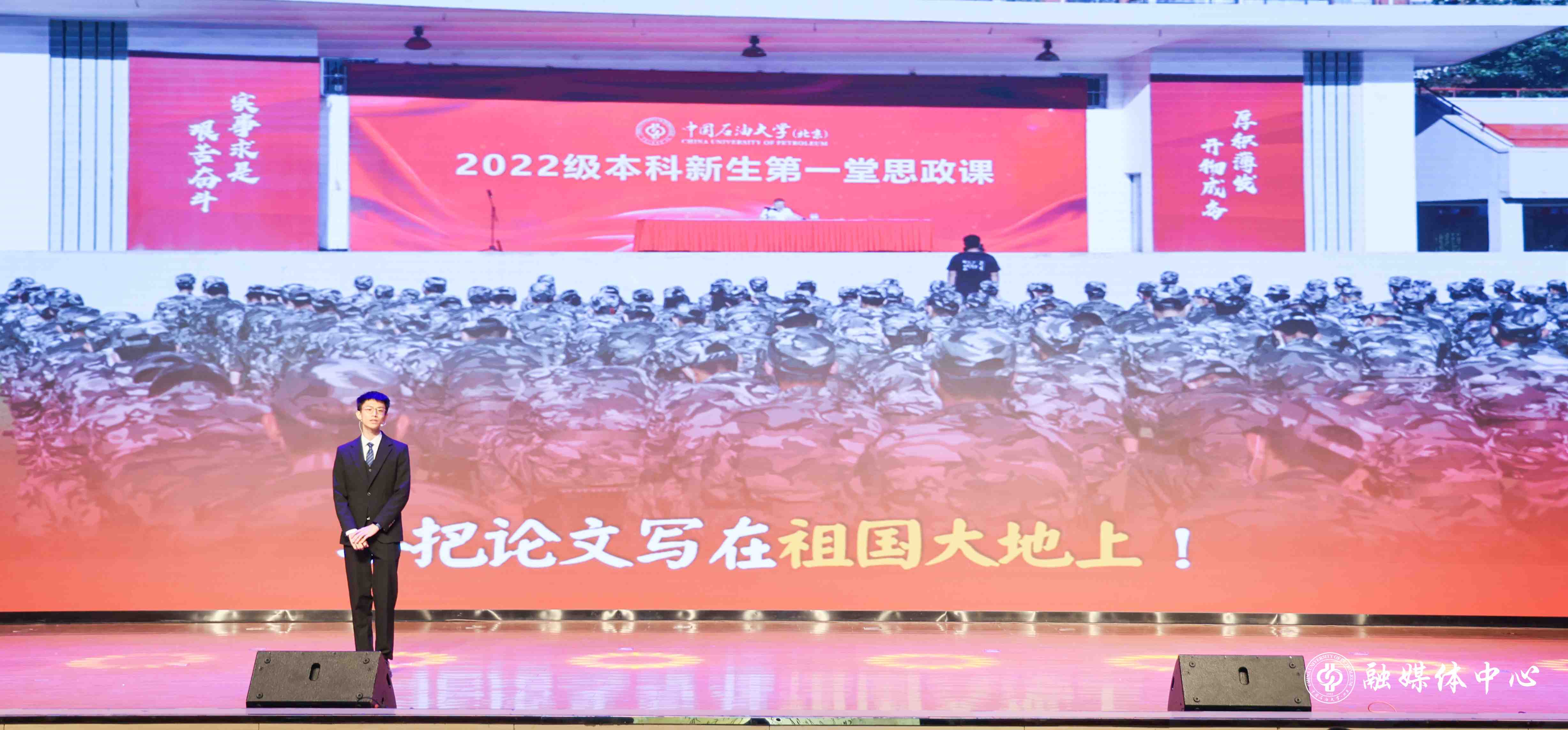 表彰大会在管弦乐合奏《步步高》激昂旋律中拉开帷幕,紧扣“挺膺担当 能源报国”主题,设置“赓续”“笃行”“致远”三个篇章,通过获奖学生代表的主题讲述,全方位展现了中石大学子胸怀家国的青春风采与矢志奋斗的青春底色。