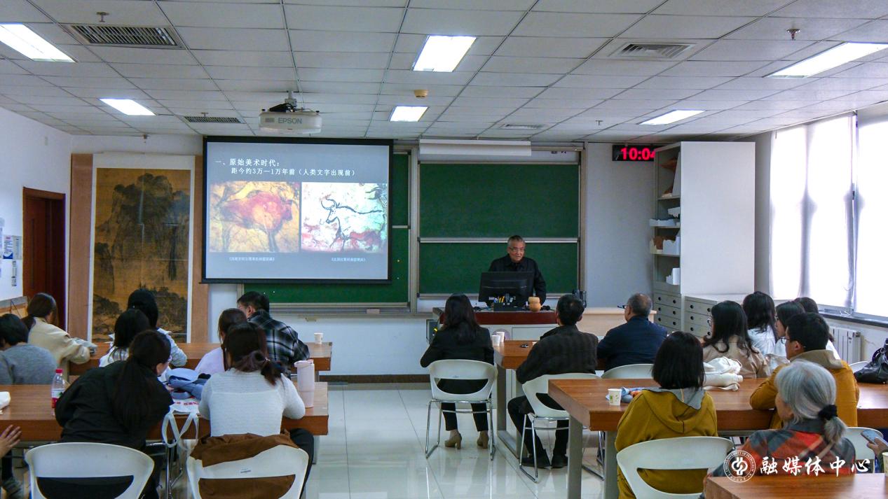 展览现场,师生在李如研究员的讲解下观展交流,体悟山水画作的意境与匠心。在此后举行的风华网络公开课上,李如还为师生带来了艺术赏析的专题讲座,深入分享了艺术创作感悟。