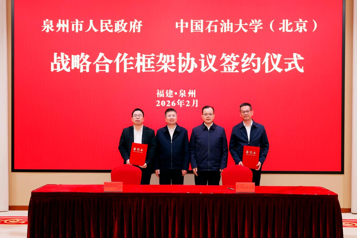 2月6日,中国石油大学(北京)与泉州市人民政府在泉州举行战略合作框架协议签约仪式。中国石油大学(北京)校长金衍、泉州市市长蔡战胜出席活动并致辞,中国石油大学(北京)副校长李景叶、泉州市副市长黄长捷代表双方签订战略合作协议,泉州市相关部门负责人、学校有关职能部门和学院教师代表参加活动。