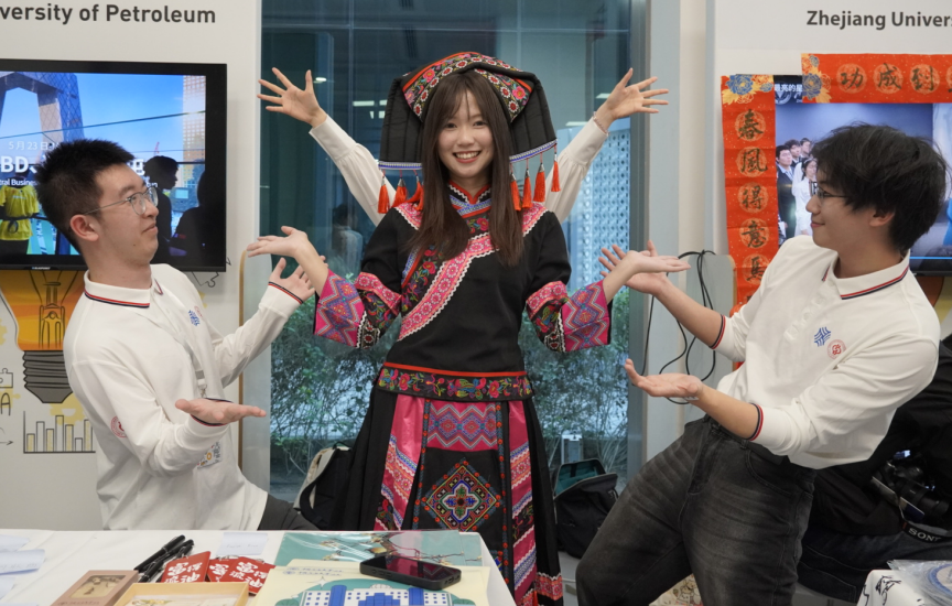 “中国文化日”活动中,师生们通过表演舞龙、书写扇面、吹葫芦丝、制作中国传统美食等节目,向哈利法大学的师生展示了中华传统文化的深厚底蕴和魅力风采。中石大还布设了宣传展台,向当地学生介绍了学校学科优势、科研成果、留学生活等,诚挚邀请阿联酋友人来华交流学习。现场数十名阿联酋学生表达了对中石大的喜爱,并写下对中国与中石大的美好祝福。此外,营员们还一同探访了阿联酋自然历史博物馆、扎耶德国家博物馆等文化地标,在多元文化的碰撞与交融中拓宽了全球视野。