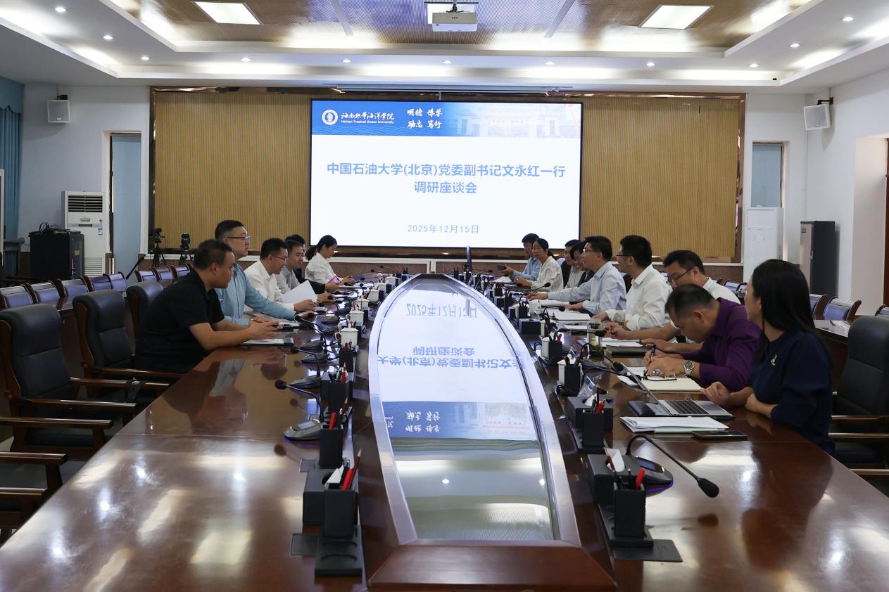 12月15日至18日,学校党委副书记文永红一行赴中国海油海南分公司、中国海油湛江分公司、海南热带海洋学院走访交流。学校党政办公室、科学技术研究院、学生工作部(处)、安全与海洋工程学院相关人员陪同走访。