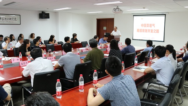 聘任仪式结束后,胡文瑞院士作了题为“中国页岩气规模有效开发之路”的学术报告。他介绍了中国页岩气的勘探开发现状及进展,讲解了地质综合评价、水平井组优化钻井、开发优化技术、水平井体积压裂、水平井组工厂化作业、清洁开采技术等适合中国地质地表特点的页岩气勘探开发主体技术,阐述了井位部署平台化、钻井压裂工厂化、工程服务市场化、采输作业撬装化、生产管理数字化、组织管理一体化等具有页岩气特色的“六化”管理模式。同时针对中国页岩气产业目前存在的突破深层效益开发、非海相有效开发、关键技术和装备“卡脖子”以及非技术因素等问题,他提出了构建“五低”开发模式、设立综合改革试验区和国家重大专项等建议。