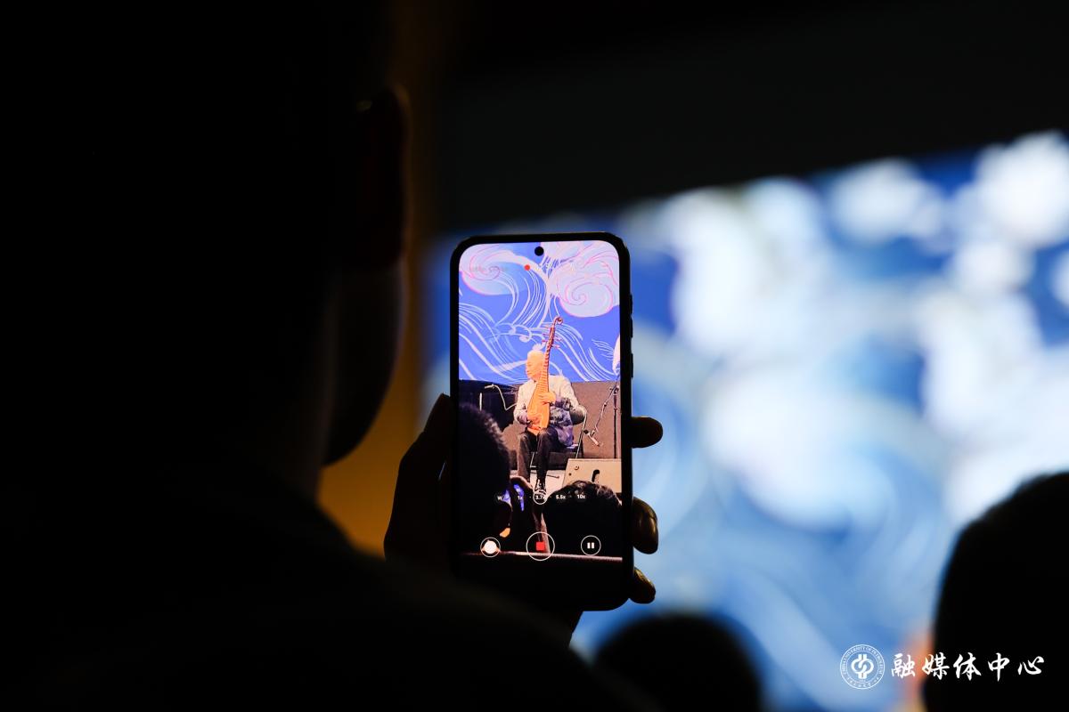 活动中,方锦龙从中国乐器的发展案例切入,通过现场演奏与讲解结合的方式,展现了琵琶、尺八、骨笛等传统乐器的独特魅力,即兴演绎了《忆江南》《金蛇狂舞》等经典曲目,更以“国乐混搭”形式将流行音乐、影视配乐与民乐融合,引得现场观众掌声不断。方锦龙近年来致力于国乐普及,其作品的网络视频播放量超10亿次,被誉为“行走的民乐百宝箱”。在互动环节,方锦龙分享了关于乐器、国乐传承等方面的见解,并鼓励年轻人用自己的方式赋予传统文化新的生命力。