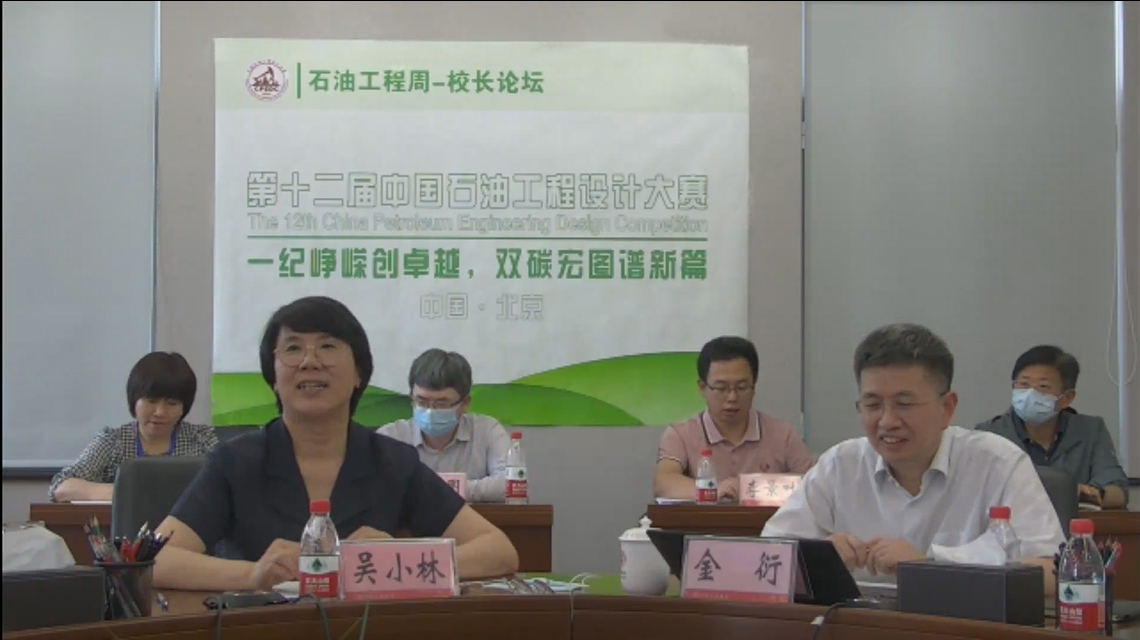5月28日,为积极响应国家“双碳”战略目标,在第十二届中国石油工程设计大赛召开之际,中国石油大学(北京)在线举办主题为“‘双碳’目标下的石油高校创新型人才培养”的首届石油高校“校长论坛”。国家留学基金管理委员会副秘书长李青、中国石油天然气集团股份有限公司人力资源部员工培训处处长何波,中国石油大学(华东)、西南石油大学、东北石油大学、西安石油大学、长江大学、中国石油大学(北京)6所高校的校长、副校长和相关部门负责人参加论坛。论坛由中国石油大学(北京)副校长金衍主持。