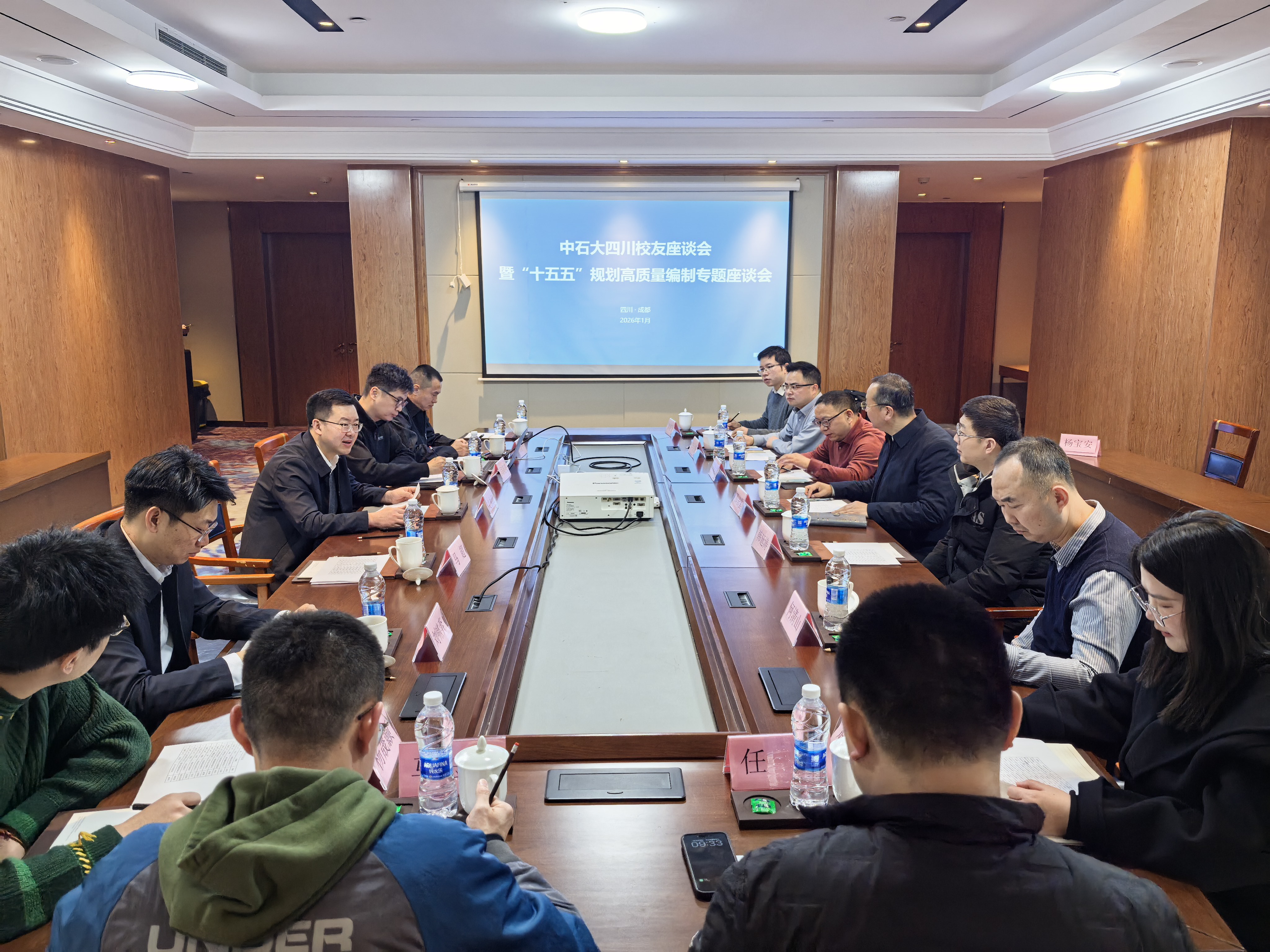 1月25日上午,文永红赴中国石油大学四川校友会看望在蓉校友,并组织召开学校“十五五”规划高质量编制专题座谈会,围绕学科专业、人才培养、校友工作等内容进行深入交流。文永红介绍了学校“十四五”期间发展成就和“十五五”规划编制的总体思路与重点方向,就学校未来发展方向征求校友建议。他表示,学校所取得的每一项成就,都与校友们对母校的深切关心、大力支持密不可分。希望以此次规划编制为契机,进一步健全校友参与学校发展的长效机制,依托四川校友会平台,在重大科研项目联合攻关、人才联合培养、学生实习实践基地拓展、科技成果转移转化等方面,打造一批标志性校地—校友—校企合作成果,为学校深度融入成渝地区双城经济圈建设、服务国家西部发展战略搭建桥梁纽带,为强国建设、民族复兴伟业贡献中石大人力量。