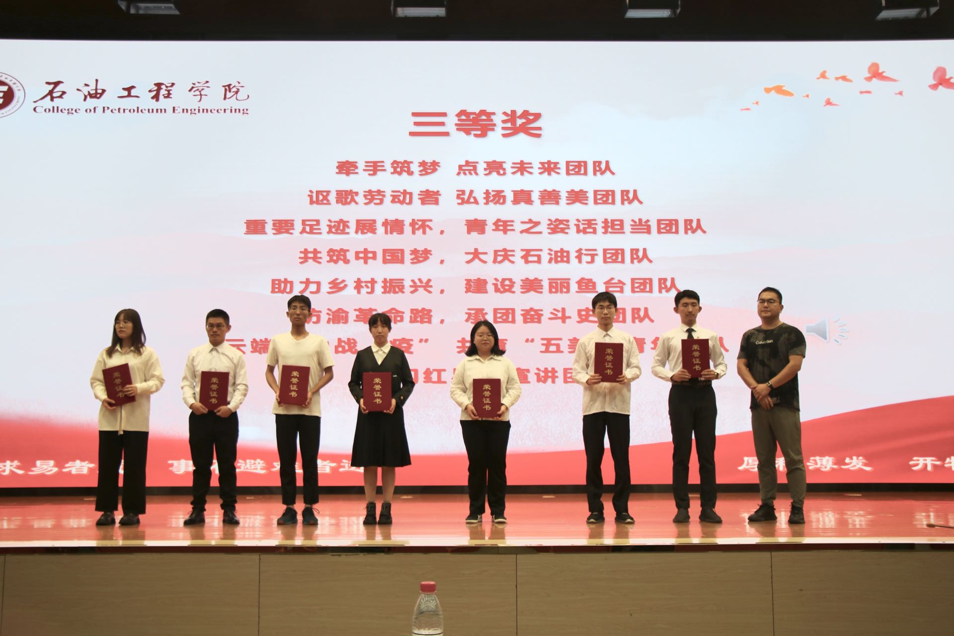今年暑假,石油工程学院组织开展第四期“铁人精神训练营”,学院青年学生积极投身社会课堂,取得了良好的育人效果和积极的社会反响。经评比展示,涌现出16支优秀团队。在“领航·表彰”环节,学院党委副书记刘东东宣读社会实践优秀团队表彰决定,学校学生工作部副部长张松为获奖团队代表颁发证书。优秀社会实践团队代表李文浩从前期准备、中期执行、后期总结三个层面分享了开展社会实践的经验,鼓励学员们积极投身社会实践,在社会课堂中受教育、长才干、作贡献。