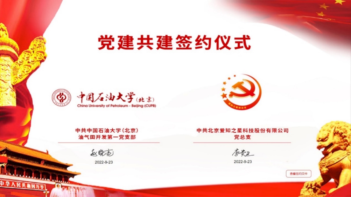 为加强校企交流,提升基层党建工作质量,9月23日,中国石油大学(北京)油气田开发工程系三个党支部与北京爱知之星党总支联合开展共建交流活动暨“党建共建”签约仪式。