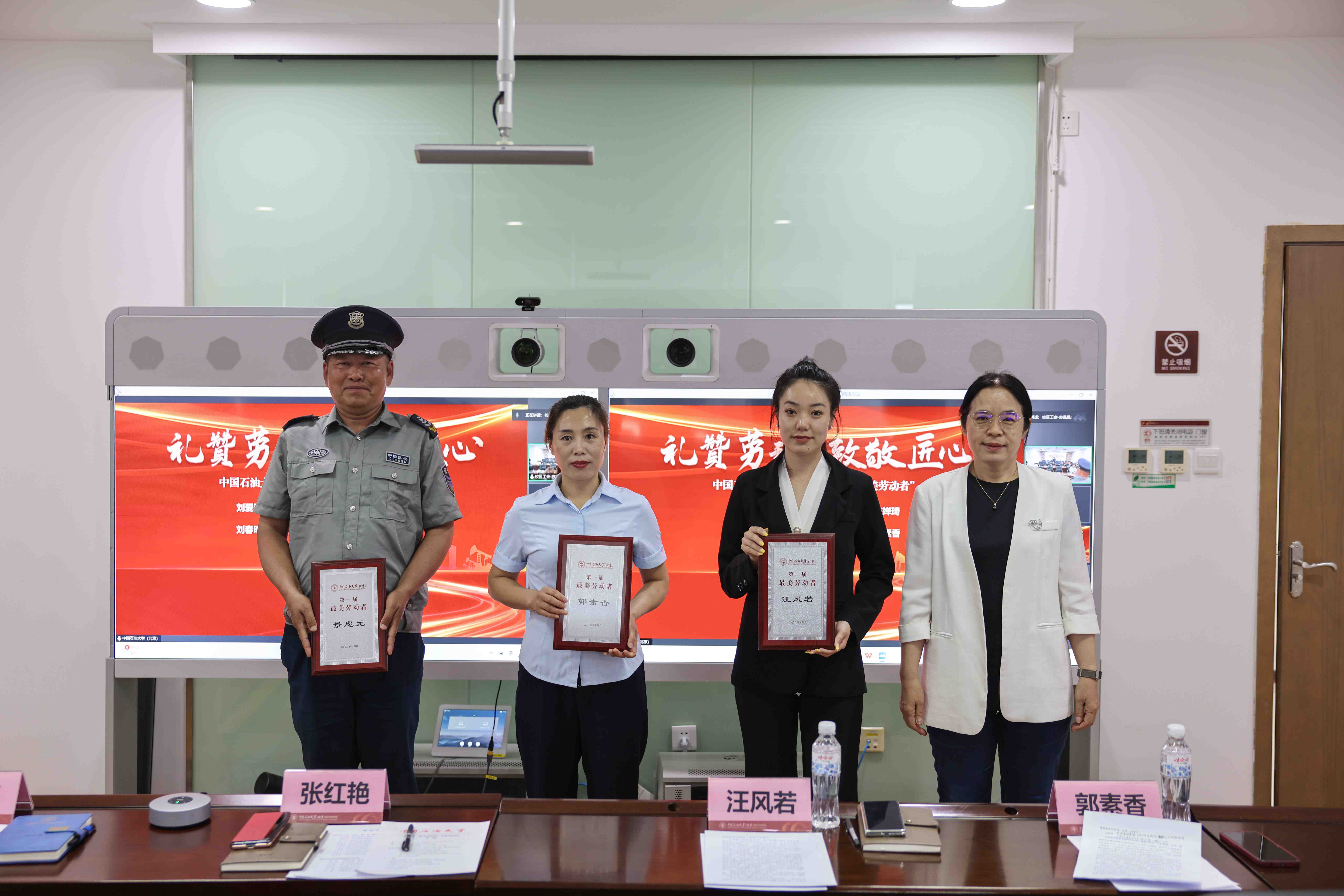 4月30日下午,在五一劳动节即将到来之际,中石大举办“礼赞劳动 致敬匠心”第一届“最美劳动者”表彰座谈会。获得第一届“最美劳动者”荣誉称号的10名员工,学校副校长黄磊,克拉玛依校区领导张红艳、徐长亮,校本部和克拉玛依校区相关职能部门负责人,后勤服务与校园安保员工代表,校本部和校区服务企业代表等,线上线上下相聚一堂,畅叙劳动之美、奉献之美。