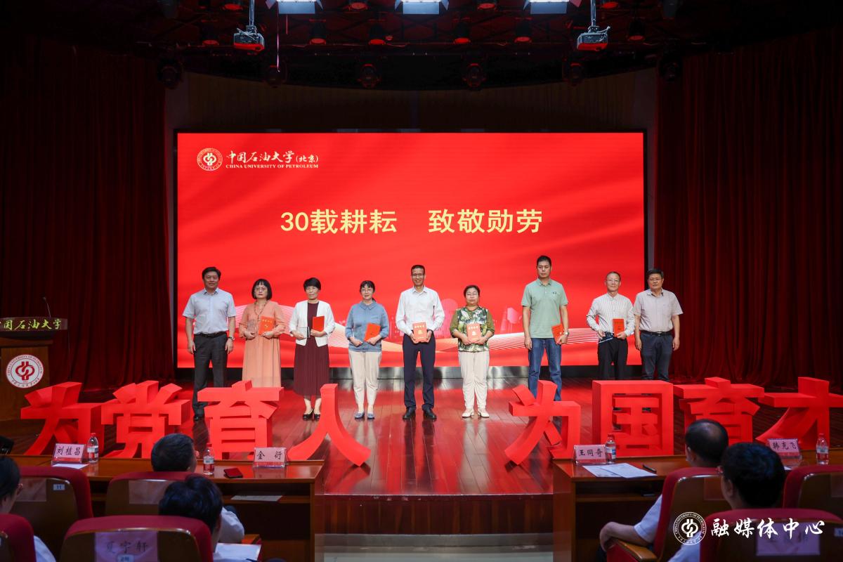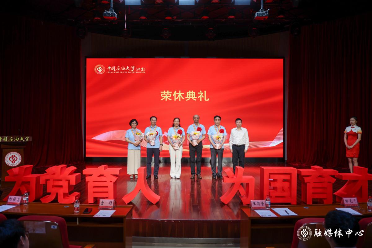 9月10日下午,中国石油大学(北京)在教工活动中心报告厅举办第三届“为党育人 为国育才”育人故事讲述活动暨2025年度教职工荣休典礼,共同庆祝第41个教师节。学校党委书记王同奇,校长金衍,党委副书记、纪委书记韩克飞,副校长刘植昌,党委副书记蒲俊霖,副校长黄磊,校本部机关及直属单位负责人、各学院党委书记、荣休教师代表、新入职教职工、青年师生代表等近300人现场参加,克拉玛依校区设立分会场,干部和师生代表同步收看。