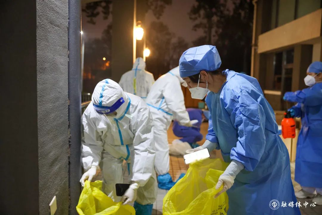 快速开展全员核酸,分片区设点检测,封控区内上门采样,师生依序听从指挥,医务人员不遑暇食。