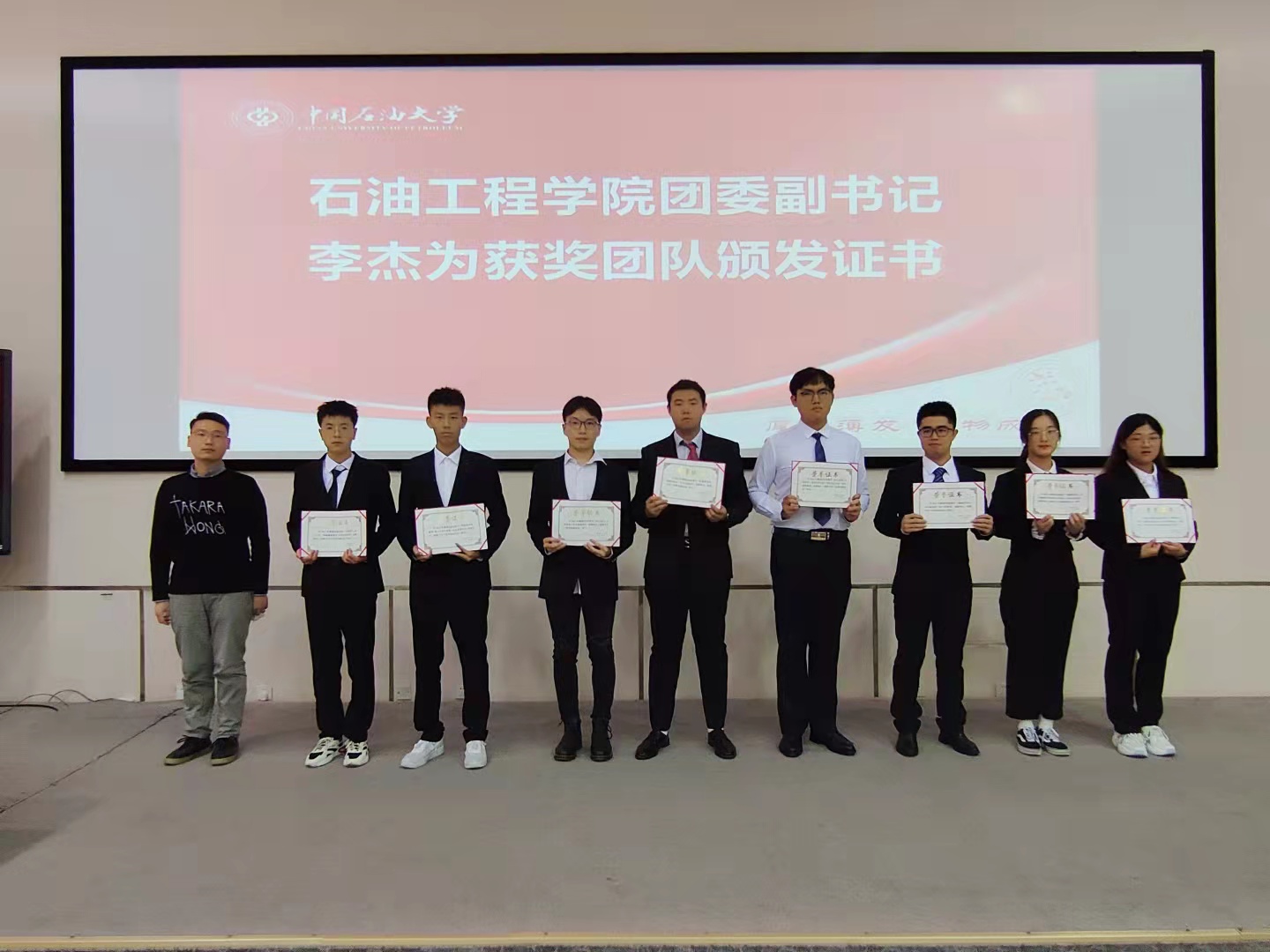 2021年暑期,石油工程学院克服新冠疫情困难,将暑期社会实践平台作为灵活开展“铁人精神训练营”的有效抓手,借助《石油工程学院训练营评价体系(2021年修订)》对每个项目的前、中、后期进行针对化、精准化、细节化管理。经过评比展示,涌现出8支优秀社会实践团队。在“领航·表彰”环节,2021年暑期社会实践指导老师张久达宣读表彰决定,李杰为获奖团队代表颁发获奖证书。