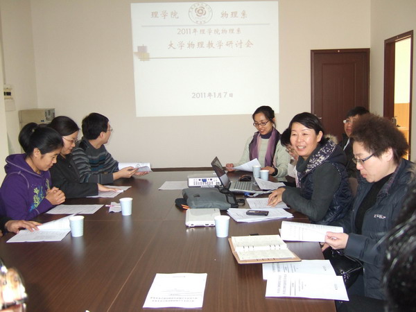 1月7日上午,石大理学院物理系大学物理教学团队召开了“大学物理教学研讨会”。会上,周广刚等5位中青年教师分别作了“文科物理课程建设思考”、“课程设计理念初探”、“像物理学家一样思考问题–谈量子物理思想教学”、“大学物理教学的几点心得体会”、“大学物理解题方法多媒体课件系统展示”报告,报告引起了教师们的热烈讨论,并纷纷发表了自己对大学物理目前教学中存在问题的看法,并提出了有益建议。