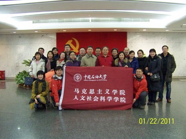 为了认真贯彻落实教育部、北京市和学校关于加强思想政治理论课程师资队伍建设的文件精神,结合2011年隆重庆祝建党90周年和纪念辛亥革命100周年的宣传思想工作主题,中国石油大学马克思主义学院寒假期间组织教师,赴上海、江阴、南京等地进行了社会实践。