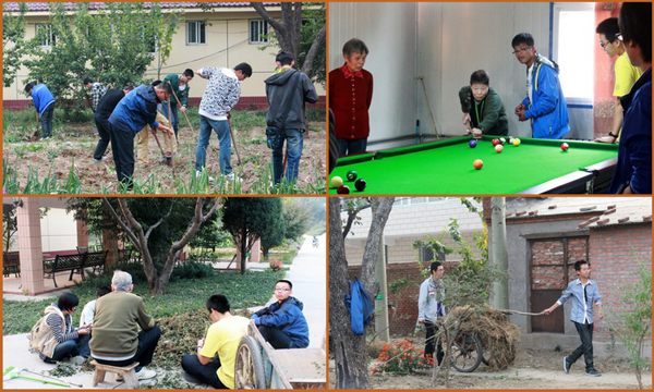 同学们到达敬老院时正值老人们午休,大家就默默做起清洁工作,为老人们营造一个洁净舒心的生活环境。同学们和老人们一起打台球、打乒乓球,还一起讨论大学生活、交流生活经验,老人们脸上始终绽放着笑容。
