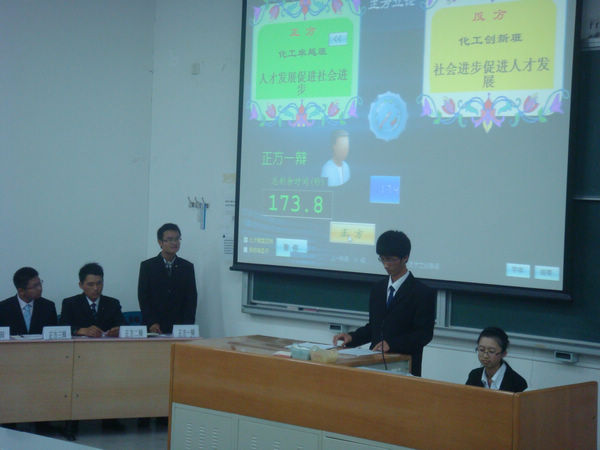 10月12日晚,“化工学院辩论赛——看我七十二辩”在三教306圆满落幕。上一届学院辩论赛“优秀辩手”李建建、袁琳、郑达担任这次比赛的评委。辩论正方化工卓越班和反方化工创新班,分别持观点“人才发展促进社会进步”和观点“社会进步促进人才发展”展开辩论。