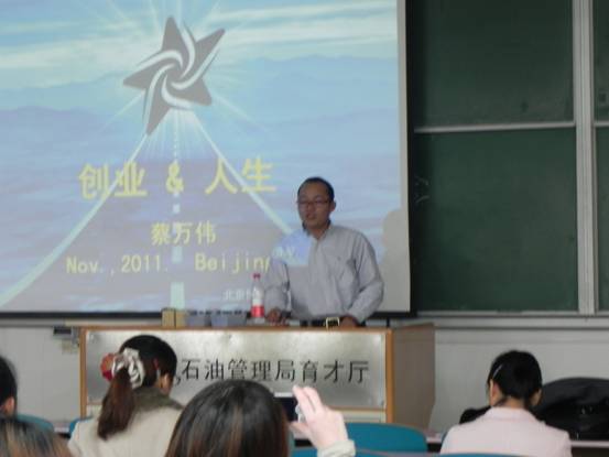 11月18日,石大98级校友、北京博德世达石油技术有限公司总经理蔡万伟应邀在三教110为同学们带来了一场精彩的创业讲座。
