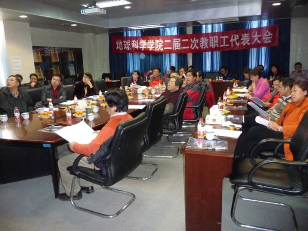 大会由学院党委书记刘洛夫主持,主要审议并通过了院2011-2013年岗位考核文件报告、院工会2011年度工作报告和院2011年度财务工作报告。王仲民代表校工会对学院工会工作所取得的成绩给予了肯定,并对学院民主管理提出了更高期望。随后,地球科学学院院长柳广弟就院2011-2013年岗位考核文件进行了宣读和说明,本次考核在对往年的考核文件的基础上进行适当的改动,在体现不同岗位不同考核方式的基础上,强调学院的考核要有利于促进学院科学发展与和谐发展。此后,刘洛夫代表学院工会将院工会一年来的工作和经费收支状况向代表们做了报告。地学院办公室主任肖淑容则做了学院2011年度财务工作报告。在讨论审议环节,所有参会人员主要针对岗位考核文件进行了热烈的讨论,并修订了部分考核文件内容。最后在地球科学学院党委副书记陈冬霞的主持下,教职工代表对三项报告进行了表决,三项报告均以全数赞同通过。