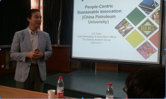 4月17日下午,石大工商管理学院邀请原宝洁公司全球零售创新总经理蔡元(A.Y.Tsai)先生来校做“以人为中心的可持续性创新”的讲座。
