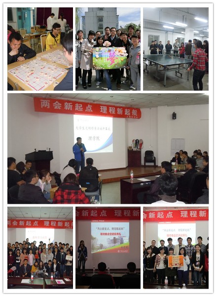 此次系列活动于3月18日至4月25日举行,由理学院团委主办、研究生会承办。活动开始,理学院党委副书记杨东杰做了“大学生文明修身工程”活动的动员,他倡导同学们要养成修身自省习惯,弘扬并践行 “北京精神”和“雷锋精神”,不断拼搏进取。活动动员正式拉开了此次系列活动的序幕。随后,依次开展了乒乓球大赛、趣味智力竞赛、“我爱我班”海报设计大赛、“以棋会友”棋类大赛以及联欢晚会暨颁奖典礼。活动结束后,辅导员王祎老师充分肯定了理学院第二届研究生会开展的各项工作,对同学们积极参加各项活动及所取得的成绩给予了高度地评价,宣告着“两会新起点,理程新起航”系列活动取得圆满成功。