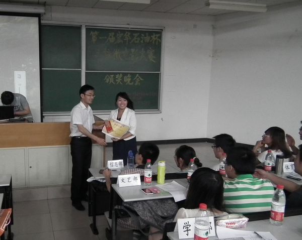 5月7日,由中国石油大学、中国政法大学和北京化工大学联合主办的第一届“宏华石油杯”三校微电影大赛颁奖晚会在石大三教105圆满结束。化工学院团委老师张延港出席晚会并为获奖选手颁奖。