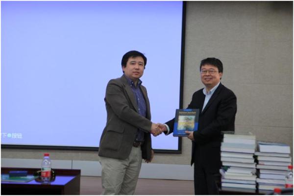 冯连勇教授向加方客人做了关于中国能源市场及投资机会的报告。报告会后,加方商学院亚太管理专业负责人William Wei博士代表加方向工商管理学院赠送了管理学、会计学等教材。
