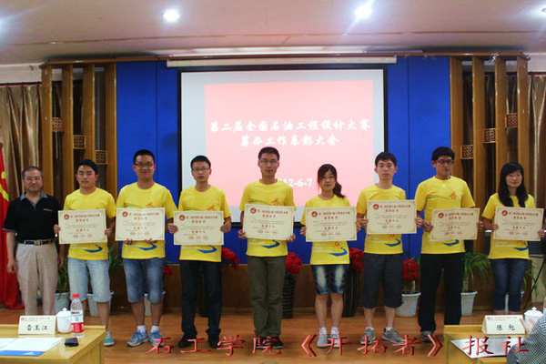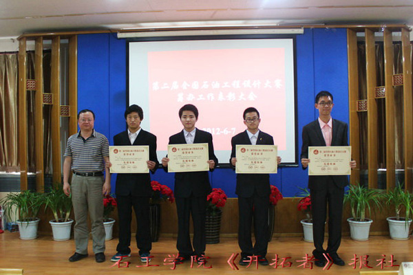 石油工程学院院长陈勉宣读表彰决定,为在第二届全国石油工程设计大赛的筹办中表现突出的个人和集体颁发荣誉证书。先进个人代表王琦、王宇航以及优秀志愿者代表王雪、谢欣奇发表获奖感言,感谢全国石油工程设计大赛这个平台让自己提高了工作能力,开拓了眼界。