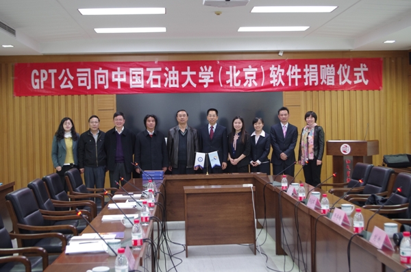 4月16日,北京金阳普泰石油技术股份有限公司(简称GPT公司)油藏地质软件捐赠仪式在地质楼204会议室举行,GPT公司董事长兼总经理秦志军,地球科学学院党委书记刘洛夫、院长柳广弟参加了仪式,仪式由刘洛夫主持。