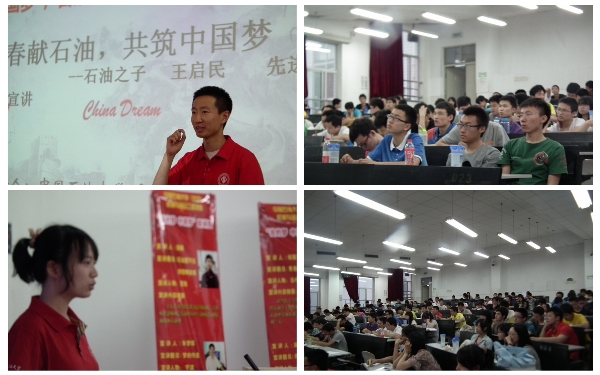 宣讲团成员朱勇男同学作了题为“青春献石油,共筑石油梦”的演讲,介绍了老一辈石油人王启民的先进事迹;冷阳同学作了题为“三老四严代代传,铁人精神永向前”的演讲,介绍了石油人的铁人精神;易璐同学作了题为“石油里开出的铿锵玫瑰”的宣讲,介绍了宫敬教授的感人事迹等等。这次宣讲,让大家领略了老一辈石油人的风采,让学生拥有了属于自己的“中国梦,石油梦”。