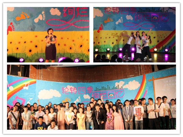 晚会在开场曲《传奇》的优美旋律中拉开了序幕,宫敬上台为毕业生致辞。在近三个小时的晚会上,歌舞、魔术、诗朗诵、话剧等各类节目精彩纷呈,高潮迭起。晚会上还放映了专门为毕业生录制的视频。这些视频展现了一个个熟悉的校园建筑,引发了同学们的美好回忆,同时也鼓励同学们在未来广阔的天地中创造出自己的辉煌。最后晚会在大合唱《光阴的故事》中落幕。