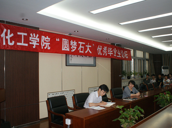 68日下午,石大化学工程学院在化工楼B403会议室举办“圆梦石大”优秀毕业生论坛。这次论坛邀请化工学院2009级优秀毕业生代表作报告,化工学院党委副书记胡建茹出席了此次论坛。