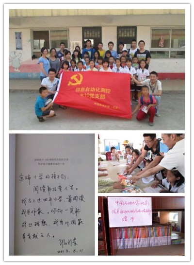 614日,该学生支部前往京瑞小学开展“关爱外来务工人员”活动。为京瑞小学的学生们送去了“童话大王”郑渊洁老师的童话书籍。其中包括一本由郑渊洁亲自为京瑞小学的学生们手写赠言的图书,他寄语京瑞小学的学生们:“阅读能改变人生。你们一定能放飞理想,成为对国家有贡献之人”。支部成员精心制作了一组生动活泼的“暑假安全知识图”,向京瑞小学的学生们宣传暑假安全知识,提升他们的安全意识。另外,支部成员还向每一位小朋友送去一封信,鼓励小朋友不畏艰辛,坚持梦想。