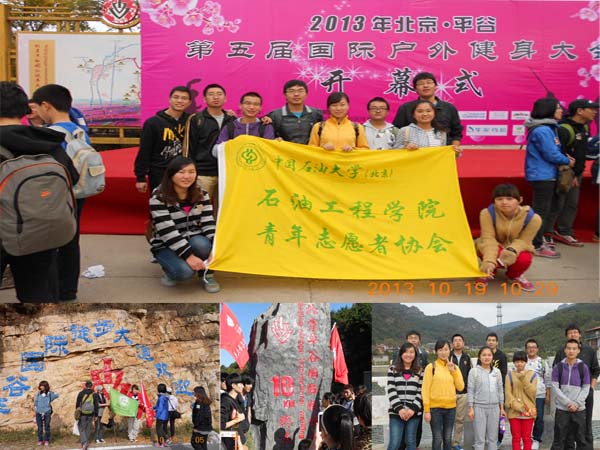 10月19日,石工学院青协组织10名志愿者参加了在平谷举办的“爱相随”万人徒步大会。本次活动旨在向公众推广低碳环保的理念并实践到体育锻炼之中。活动期间,同学们相互帮助、互相鼓励,圆满完成了从山脚到山顶13公里的徒步长走,不仅锻炼了体魄,领略了平谷优美的自然风景,更深切地体验了一次环保低碳、亲近自然的生活方式。