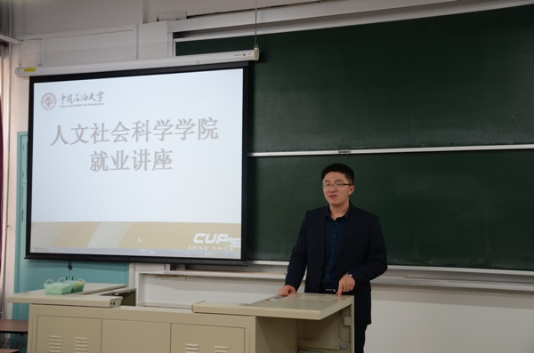 1022日上午,人文学院邀请2011级校友隋礼龙在一教302举行就业讲座。讲座由学院党总支书记赵庆海主持,人文学院2012级研究生参加了讲座。