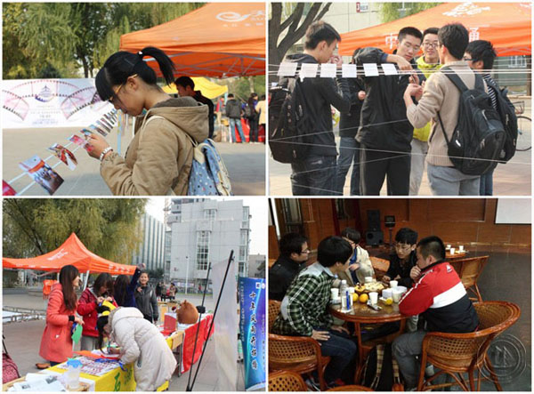 当天恰逢记者节《开拓者》报社还携手大学生记者团、校团委新闻中心、石大传媒工作室、校青协记者团、地平线BBS以及各学院媒体社团在学校南广场举行了庆祝记者节系列活动。石大各新闻媒体社团在南广场搭建照片墙,设立展台,展出特色活动图片,发放相关刊物。《开拓者》报社成员录制了十周年祝福词,发放了十周年特刊,并与现场观众进行了互动,受到了广大师生的欢迎。