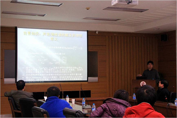 在报告会上,张群山博士介绍了通过逆时偏移(RTM)获得低波数速度信息、角度域共成像点道集(ADCIGs)等方面的最新研究成果,并与到场师生展开了热烈的讨论与交流。
