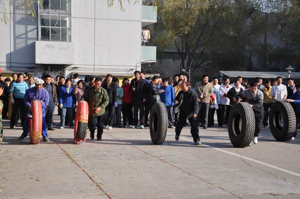 11月21日下午,后勤服务总公司工会组织了一场别开生面的趣味运动会。其下属的中心、工会小组组织成122个队,共384人次参赛。运动会举行了“袋鼠跳接力”、“赶篮球接力”、“车轮滾滾接力”、“折返跑接力”、“巧过天桥接力”等五个项目,道具都是就地取材,如汽车轮胎、编织袋、墩布把、篮球、易拉罐、塑胶地板块等。大家在这种以团体为单位的趣味性比赛中,增进了团结协作的意识和精神。