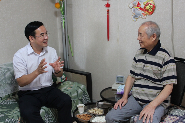 98日,在第27个教师节来临之际,校党委书记蒋庆哲在党委(校长)办公室、人事处、离退休工作处等部门负责人的陪同下,代表学校前往老领导方华灿和老教师陈廷蕤家中走访慰问,向他们送上鲜花和教师节礼物,并致以节日祝福。