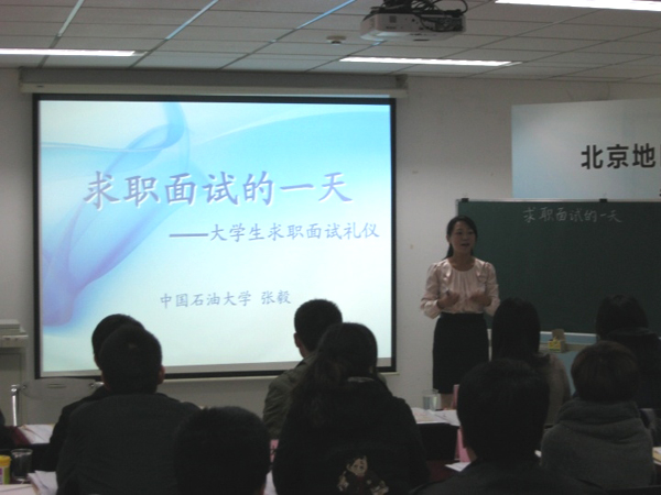石大积极响应比赛,经过校内比赛选拔,推荐了三名教师参加北京市复赛,其中张毅从来自36所高校的76名选手中脱颖而出,顺利晋级决赛。决赛中,张毅以“大学生求职面试礼仪”为题展开课程讲授,发挥出色,展现了石大就业指导教师的风采。