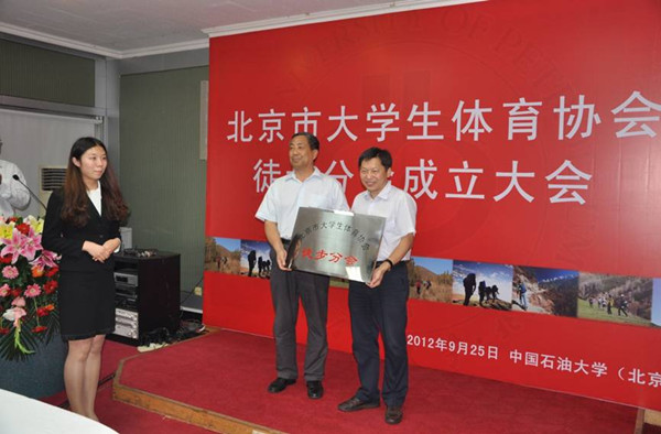 9月25日下午,北京市大学生体育协会徒步分会成立大会在中国石油大学翠宫第五会议室召开。北京市大学生体育协会主席杜松彭、北京市大学生体育协会秘书长刘启孝、中国石油大学副校长张士诚出席了成立大会。参加大会的还有来自北京大学、清华大学等北京市20余所高校的体育部负责人。
