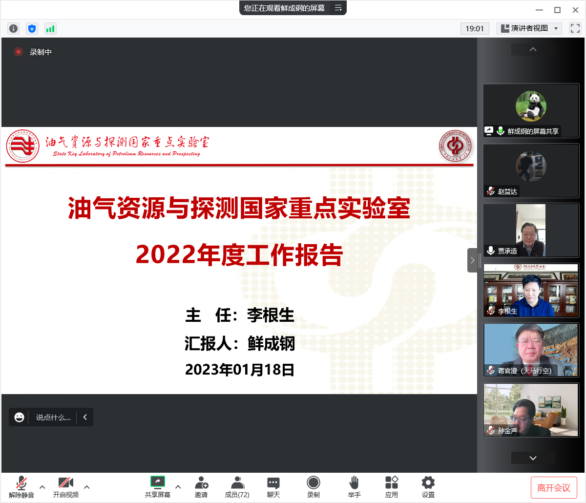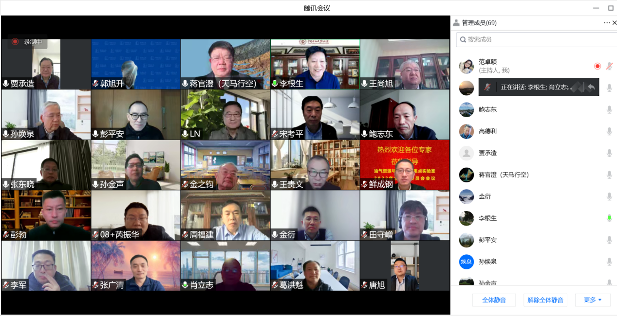 1月18日,油气资源与探测国家重点实验室2022年度学术委员会年会在线上召开。学术委员会主任贾承造院士,副主任朱日祥院士、高德利院士,学委会委员及特邀专家金之均院士、彭平安院士、李根生院士、张东晓院士、陈掌星院士、孙金声院士、李宁院士、郭旭升院士、谢玉洪院士、张来斌院士、孙焕泉院士、肖立志教授,学校领导鲍志东副校长、金衍副校长、张广清副校长,相关职能部门和学院/研究院负责人,以及实验室学术带头人、研究骨干等70余人参加了会议。贾承造院士主持会议。