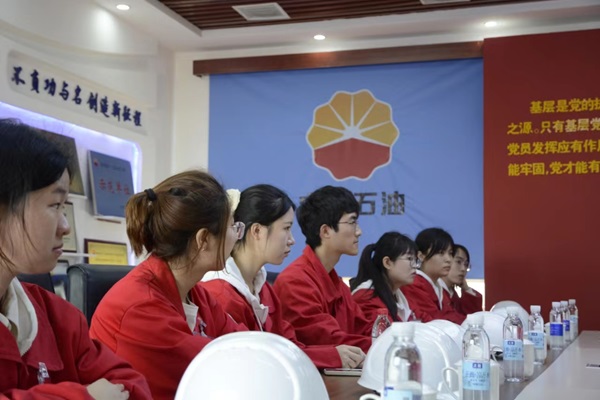 下午,研学团一行与现场工人在人工岛党建中心开展座谈。黄国梁热烈欢迎母校师生的到来,他希望研学团可以在参观中加深对大港油田的了解,用学到的知识更好的回报学校和社会。