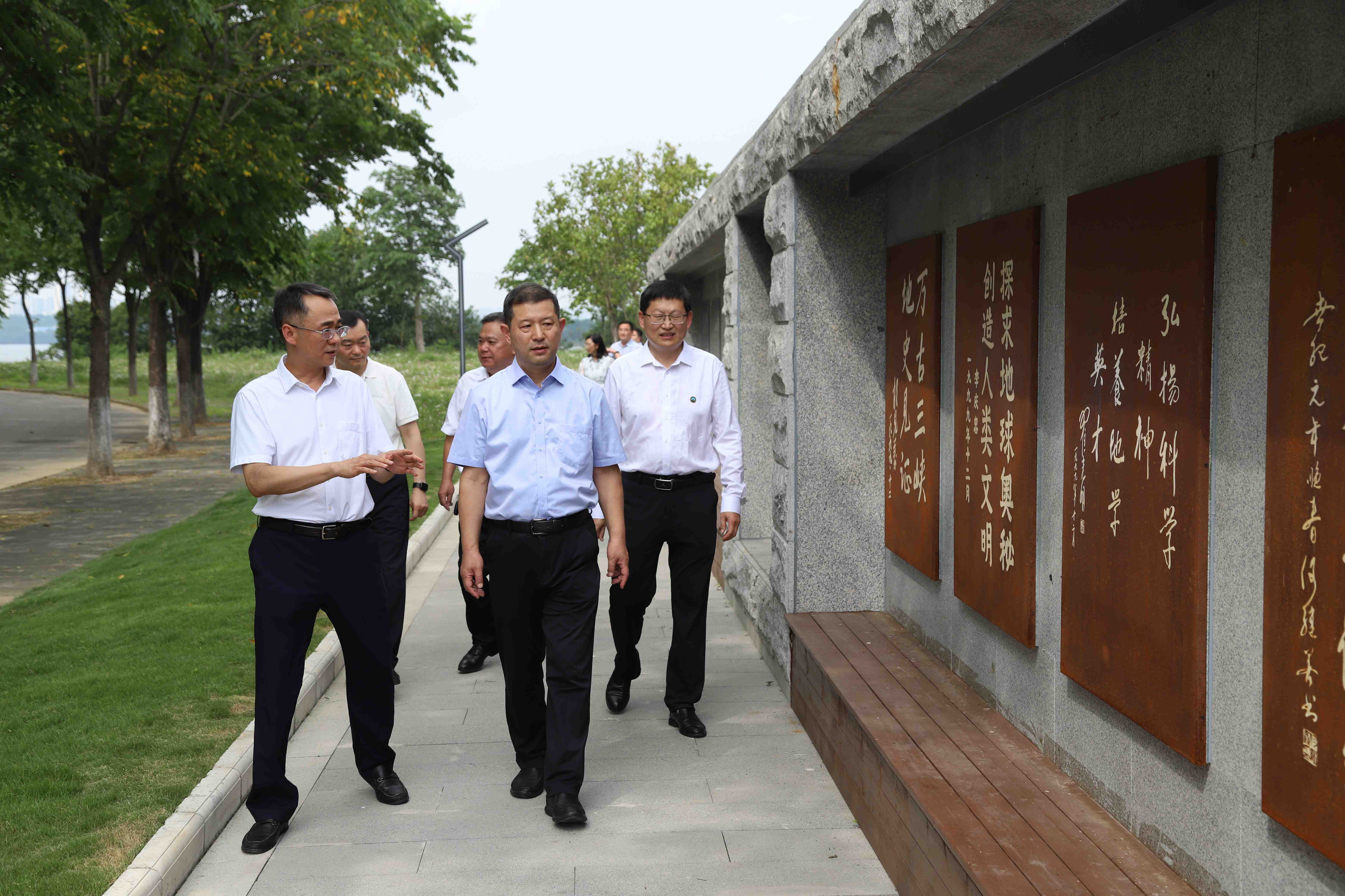 调研中,王同奇一行参观了校史馆、师生服务中心、教育数字化体验与服务中心、光纤传感技术与网络国家工程研究中心、中国地层标本长廊等,双方聚焦“高质量党建引领高质量发展”,围绕学校治理与机构改革、党建工作创新实践和品牌创建、干部队伍建设、“党管人才”体制机制、课程思政建设、高品质校园文化、学校荣誉体系和表彰激励机制等经验与做法进行交流和探讨。